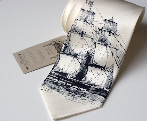 Clipper Ship Necktie Nautical Silk Sailing Ship Men S Etsy
